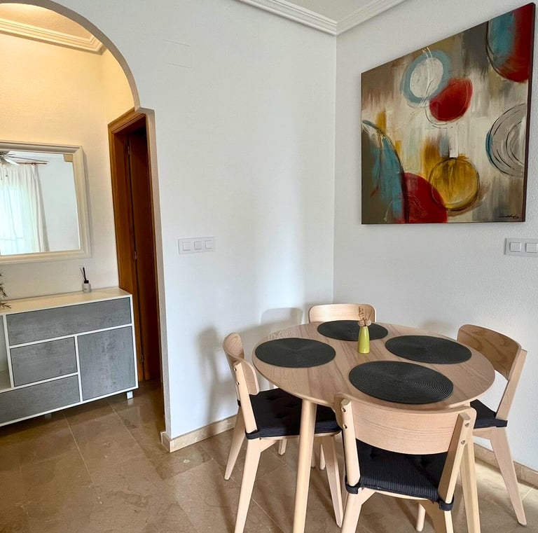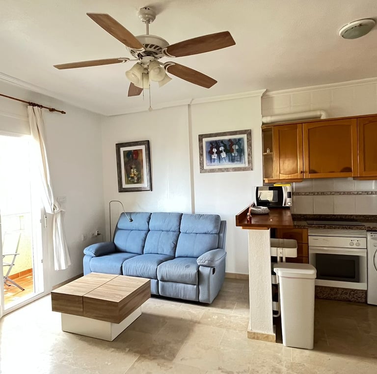 Byt v Dehesa de Campoamor nabízí dvě ložnice, dvě koupelny, obývací pokoj a kompletně vybavenou kuchyni, balkon a prostornou terasu o patro výše s nádherným panoramatickým výhledem. Kapacita ubytování je až pro čtyři osoby.